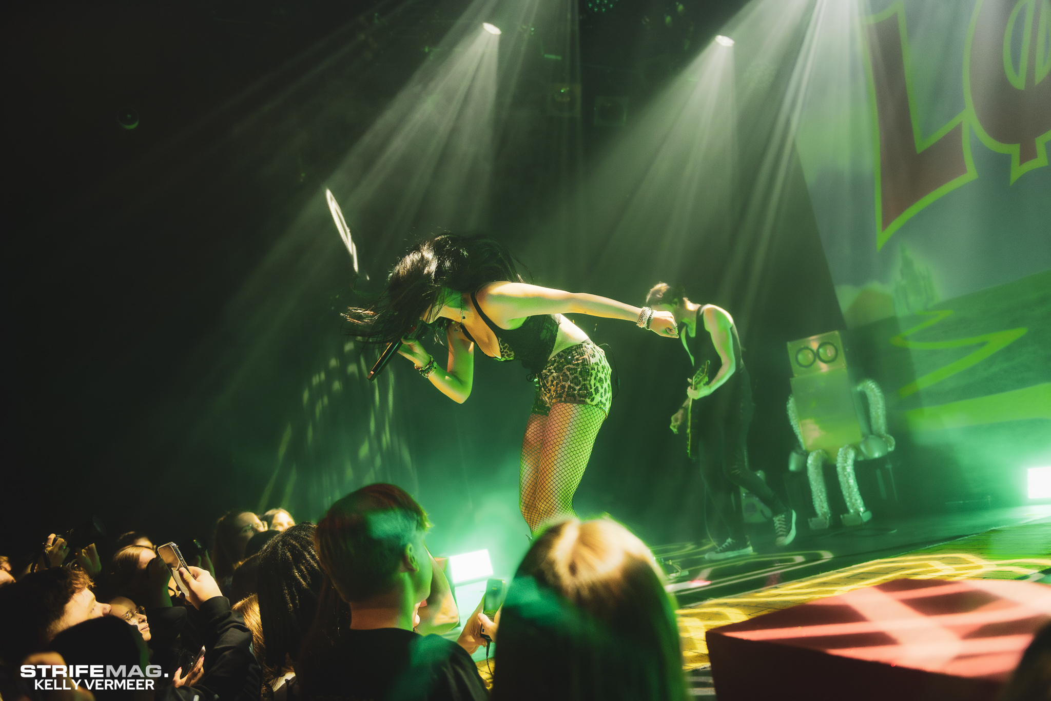 When LØLØ took the stage, the energy in the room lifted even more. A large backdrop with her name, inspired by The Wizard of Oz, echoed the theme of her latest album. She kept a playful, connection with the crowd throughout the show, but it was during Debbie Downer that she took the interaction further. Gus joined her on stage for a guest verse, and she invited two girls up to join her as “cheerleaders,” even tossing pom-poms into the crowd so more fans could join in on the fun.