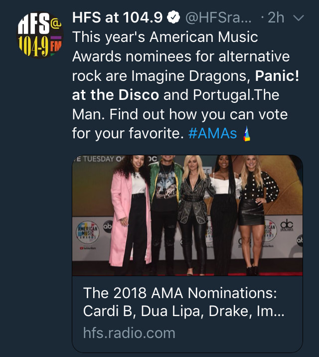 Well, Sinners, fear no longer. Panic! At The Disco has received an American Music Award nomination for Favorite Alternative Rock Artist!