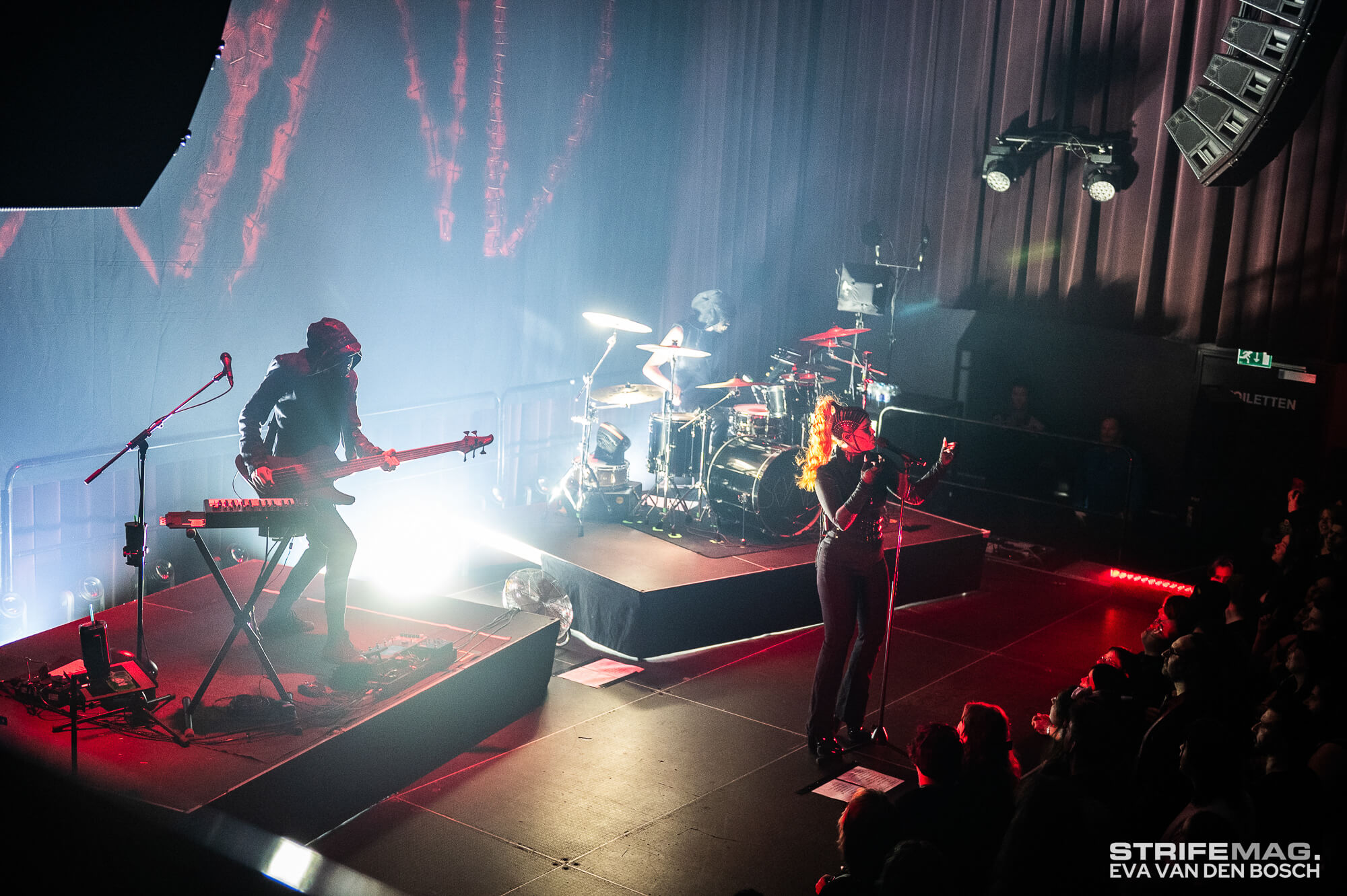 Ever since we first witnessed the chilling spectacle of SKYND opening for Babymetal at Poppodium 013 years ago, we’ve been hooked. We have followed the Australian industrial outfit through every evolution, every dark chapter, and every Dutch performance since. From their support slots for Ice Nine Kills to their steady climb through the club circuit, last night marked a significant milestone: their third, and largest, headliner show in the country, taking over Utrecht’s TivoliVredenburg Pandora room!