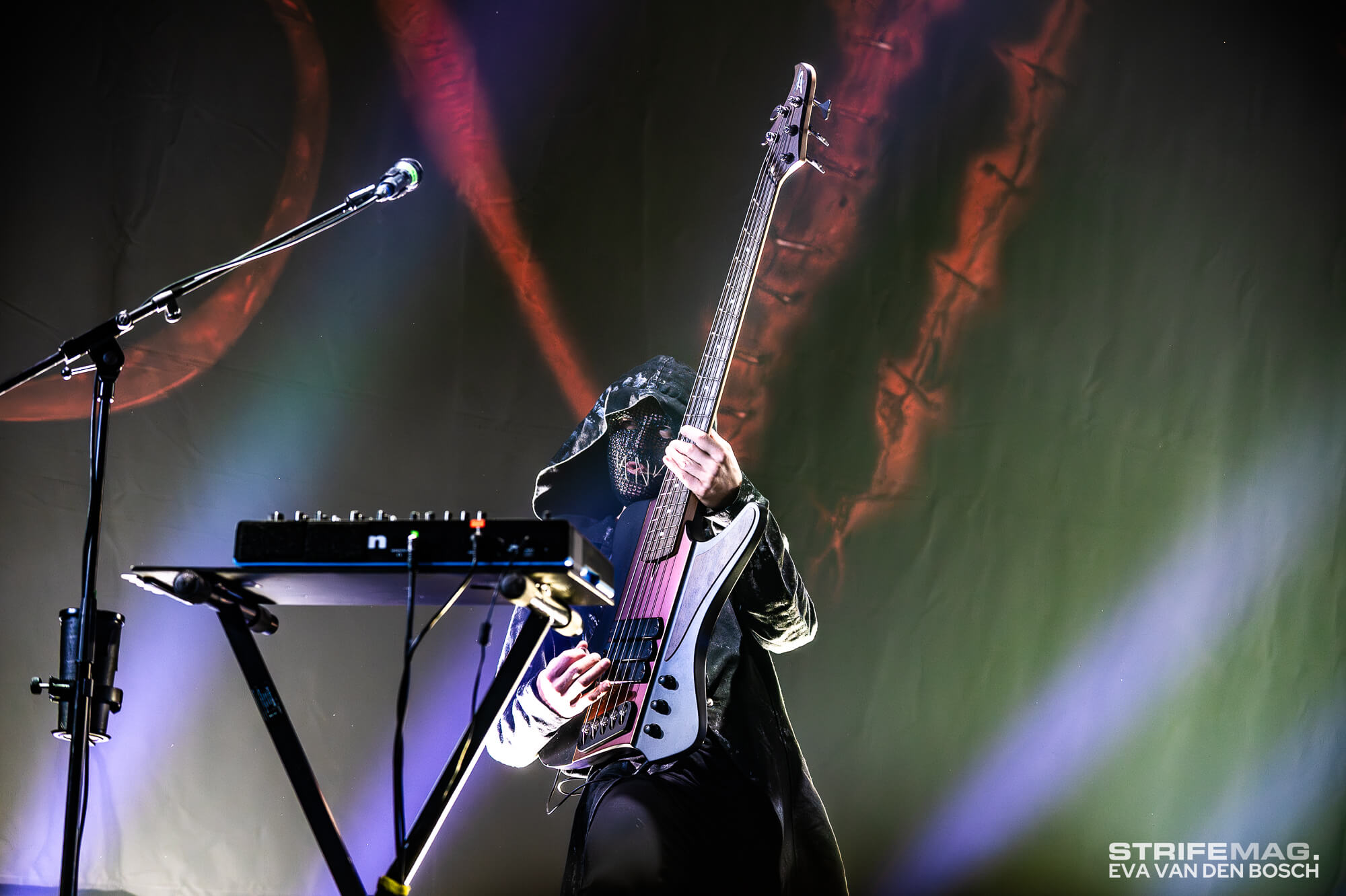 True to their established form, a SKYND show features no openers. The Pandora room at TivoliVredenburg was more or less packed to the rafters, with the balconies fully occupied by fans. The atmosphere was appropriately eerie as the crowd waited for the lights to dim for the first and final time. What followed was a massive setlist that spanned nearly the entire discography, while also offering a glimpse into unreleased material, a tradition they’ve kept alive since their very first headline run.