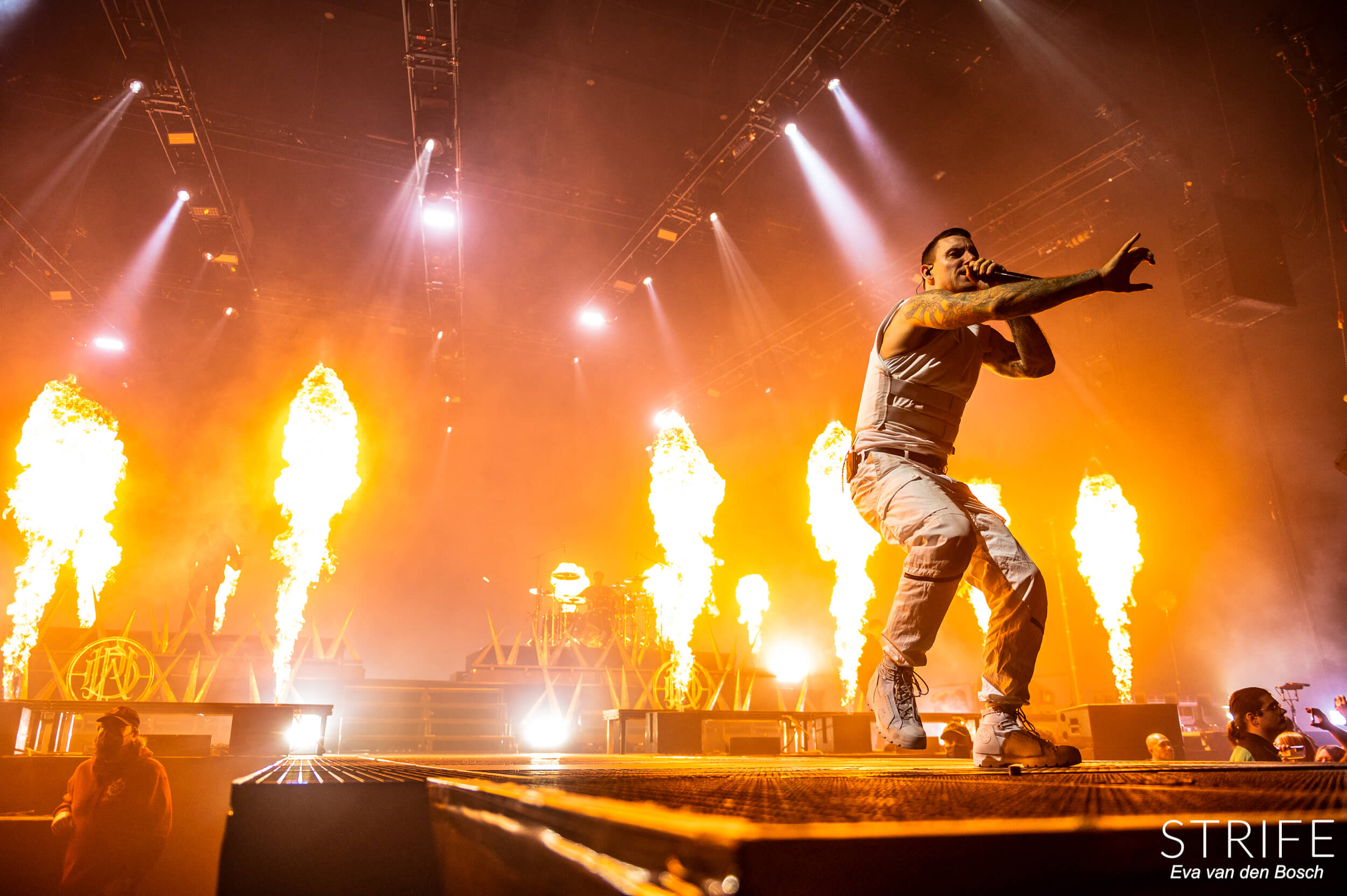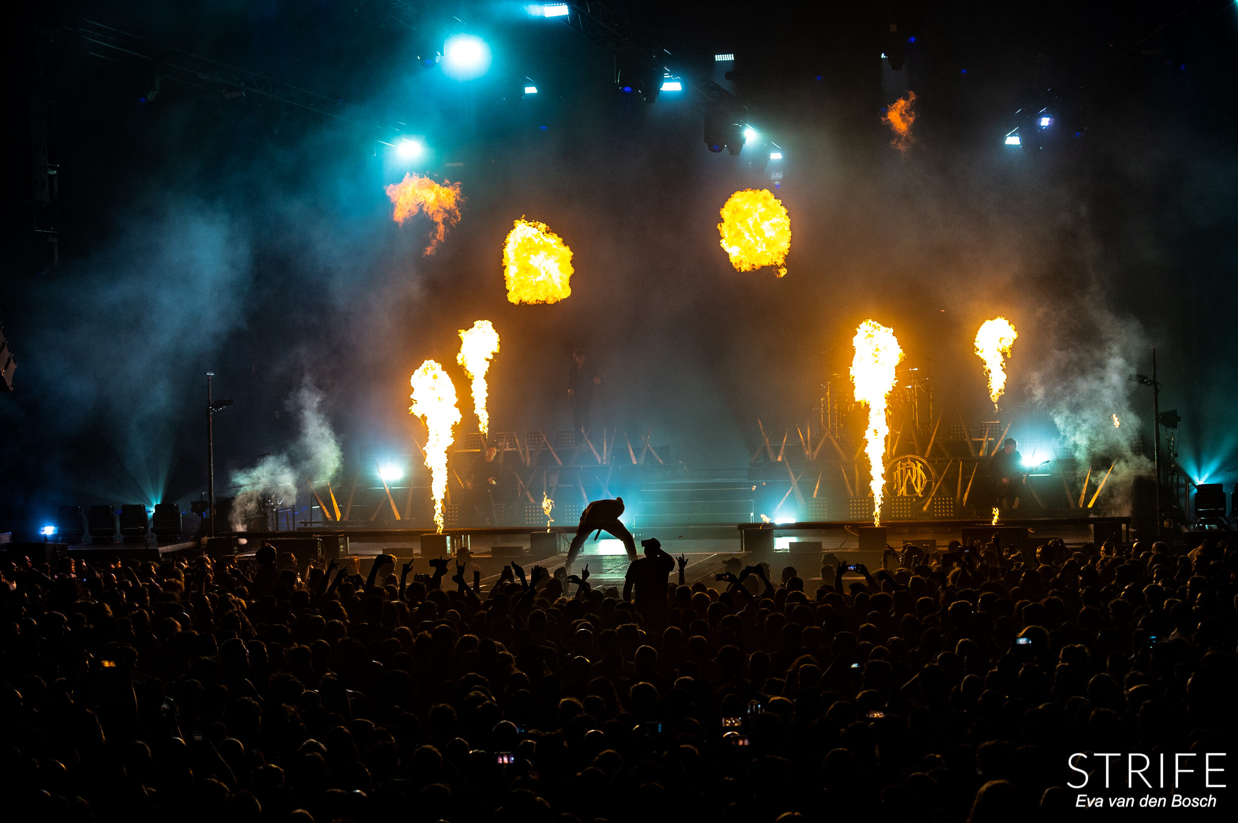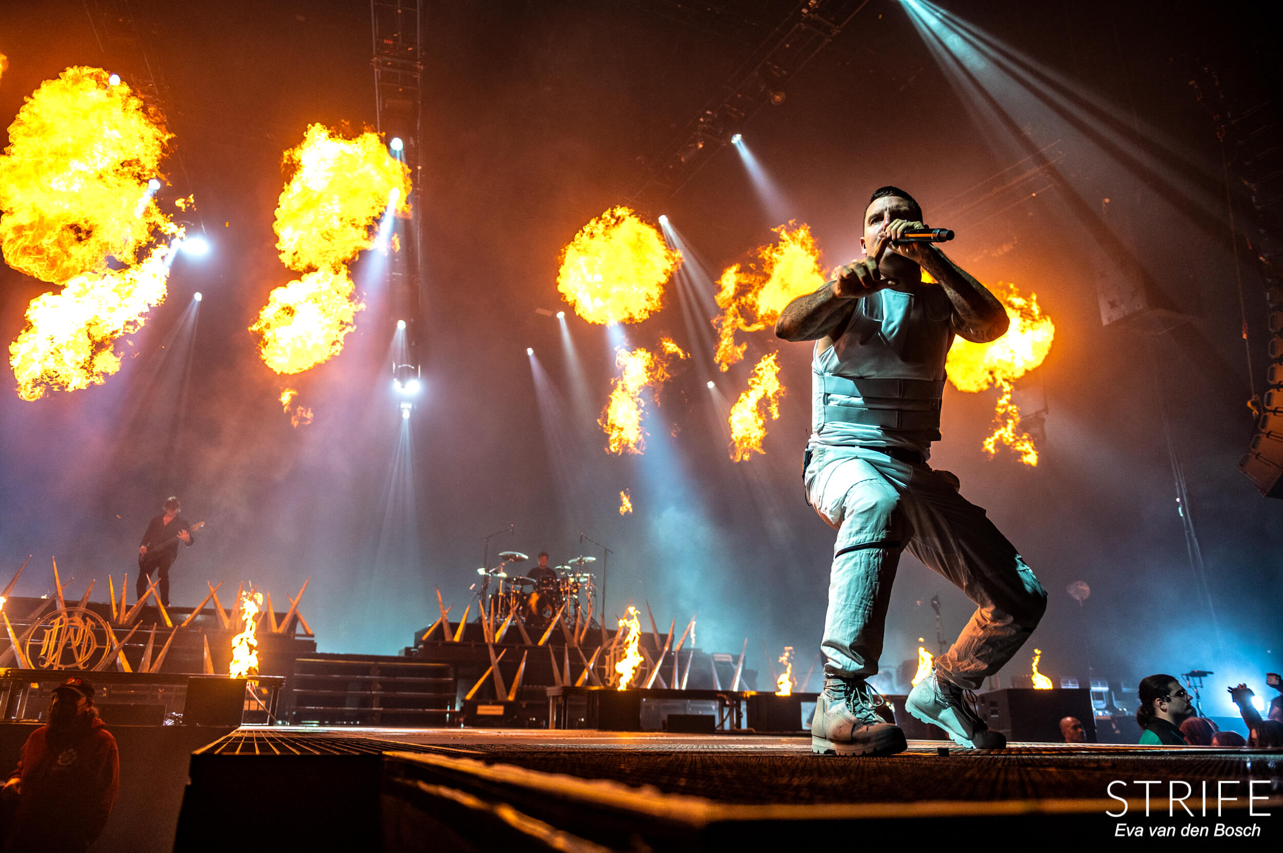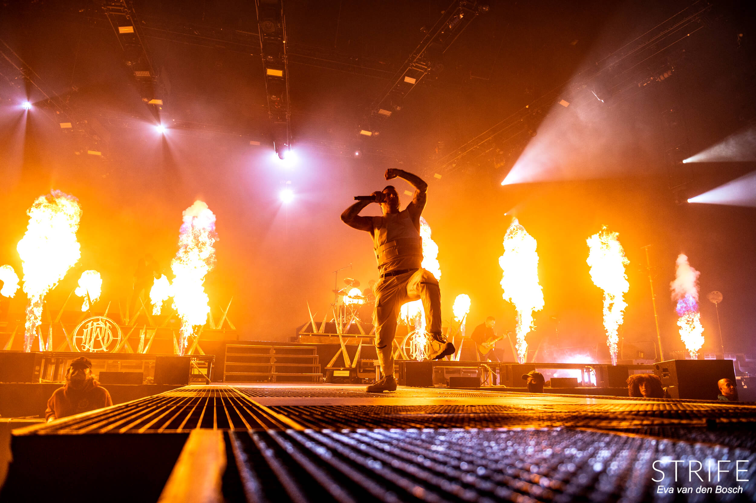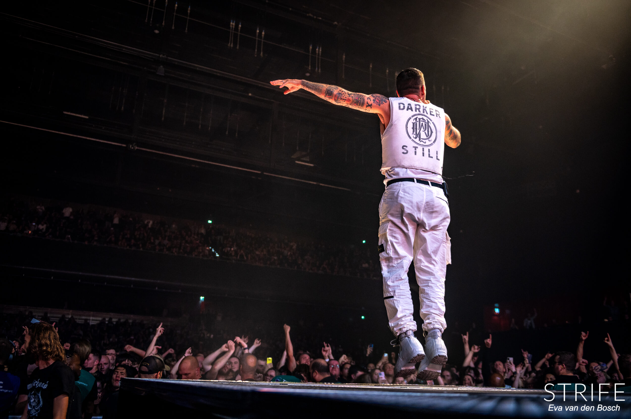 The night was already made with those 2 incredible artists performing, but of course we had the headliner still to go. The almighty Parkway Drive, who recently unleashed their brand new album Darker Still unto the world and saw mixed reviews from fans and critics alike, as has been the case since IRE. The show started in a unique fashion, with many hooded figures coming onto the stage with torches, slowly building up to the musicians taking their rightful places on stage. Kicking off their extensive set with the debut single off of Darker Still: Glitch. Bad reviews or not, the fans in the packed AFAS LIVE didn’t care, and many were already shouting back the words to the new songs.