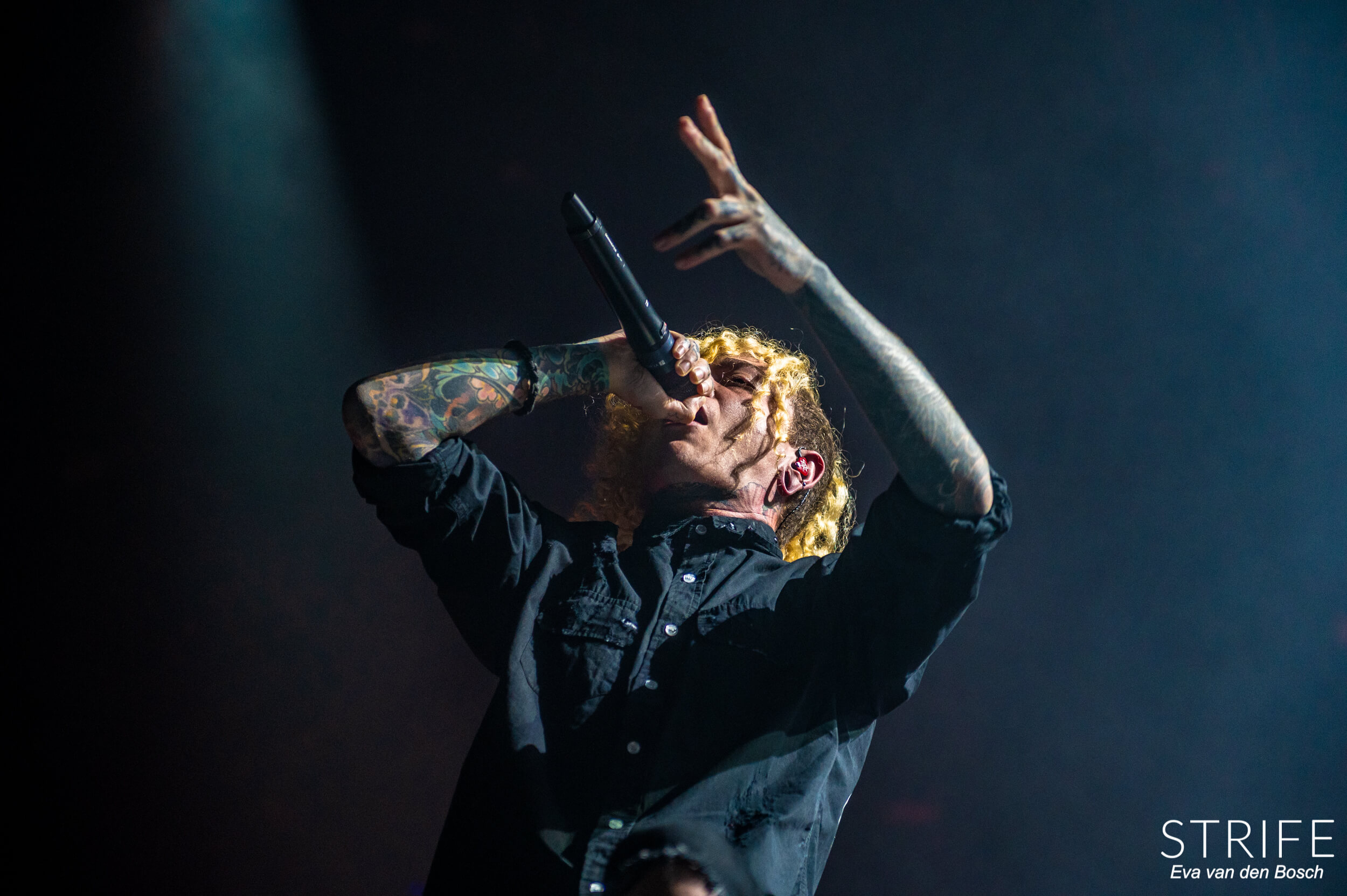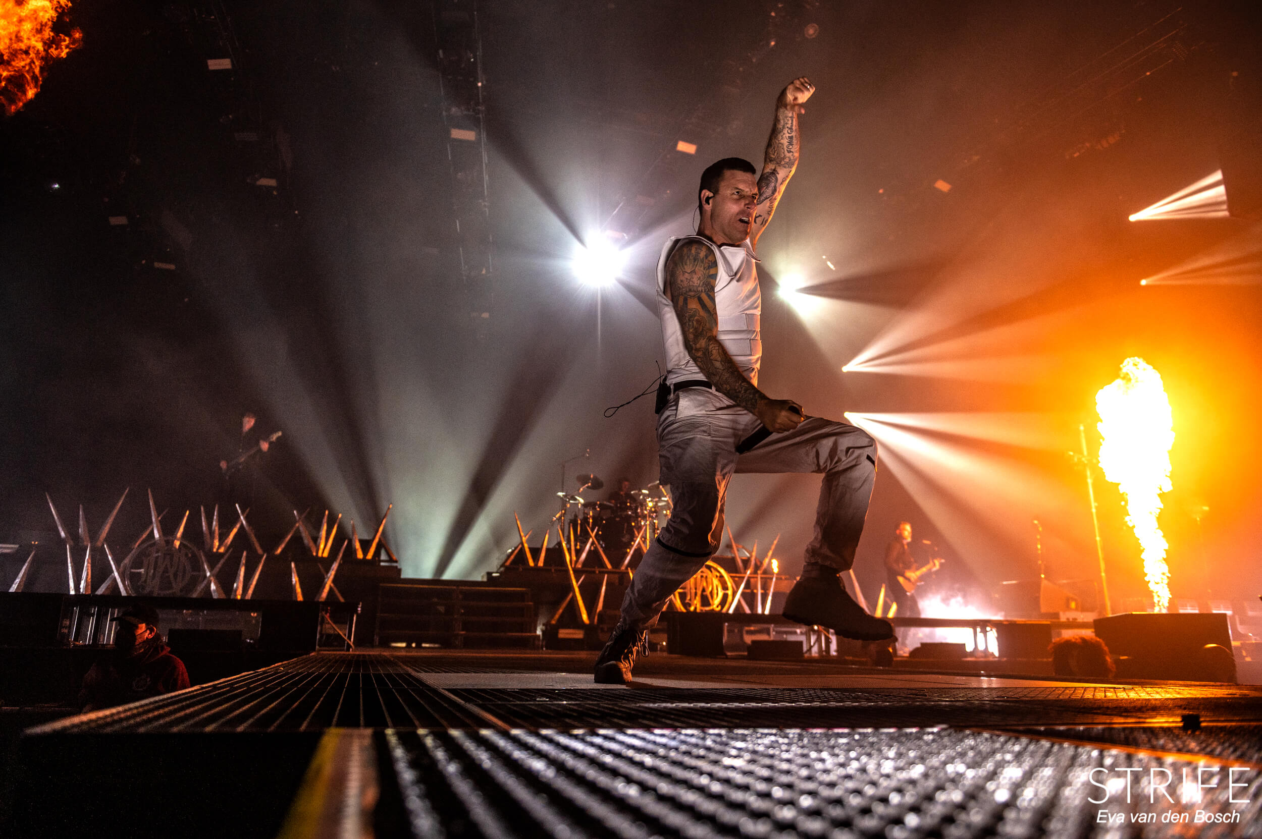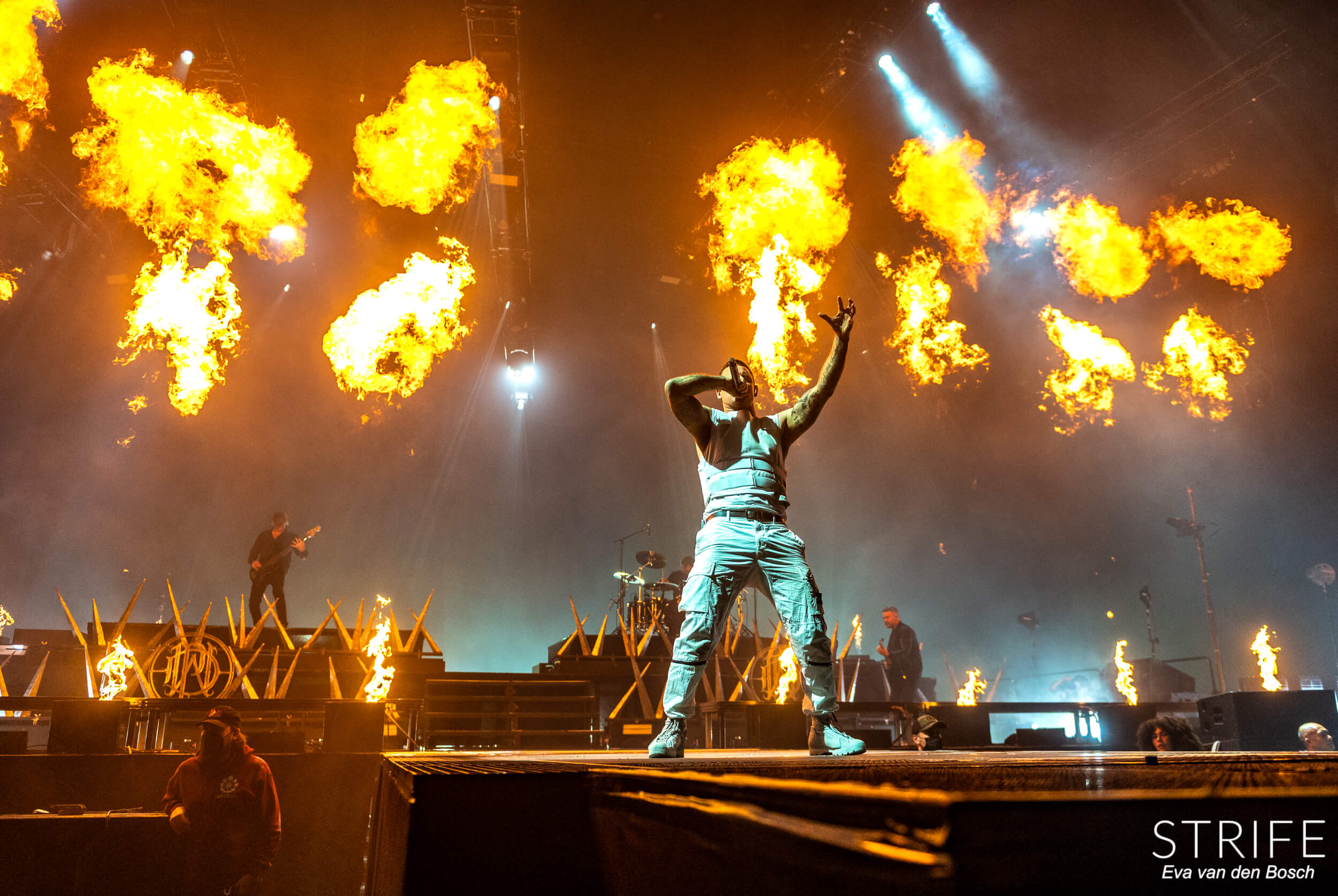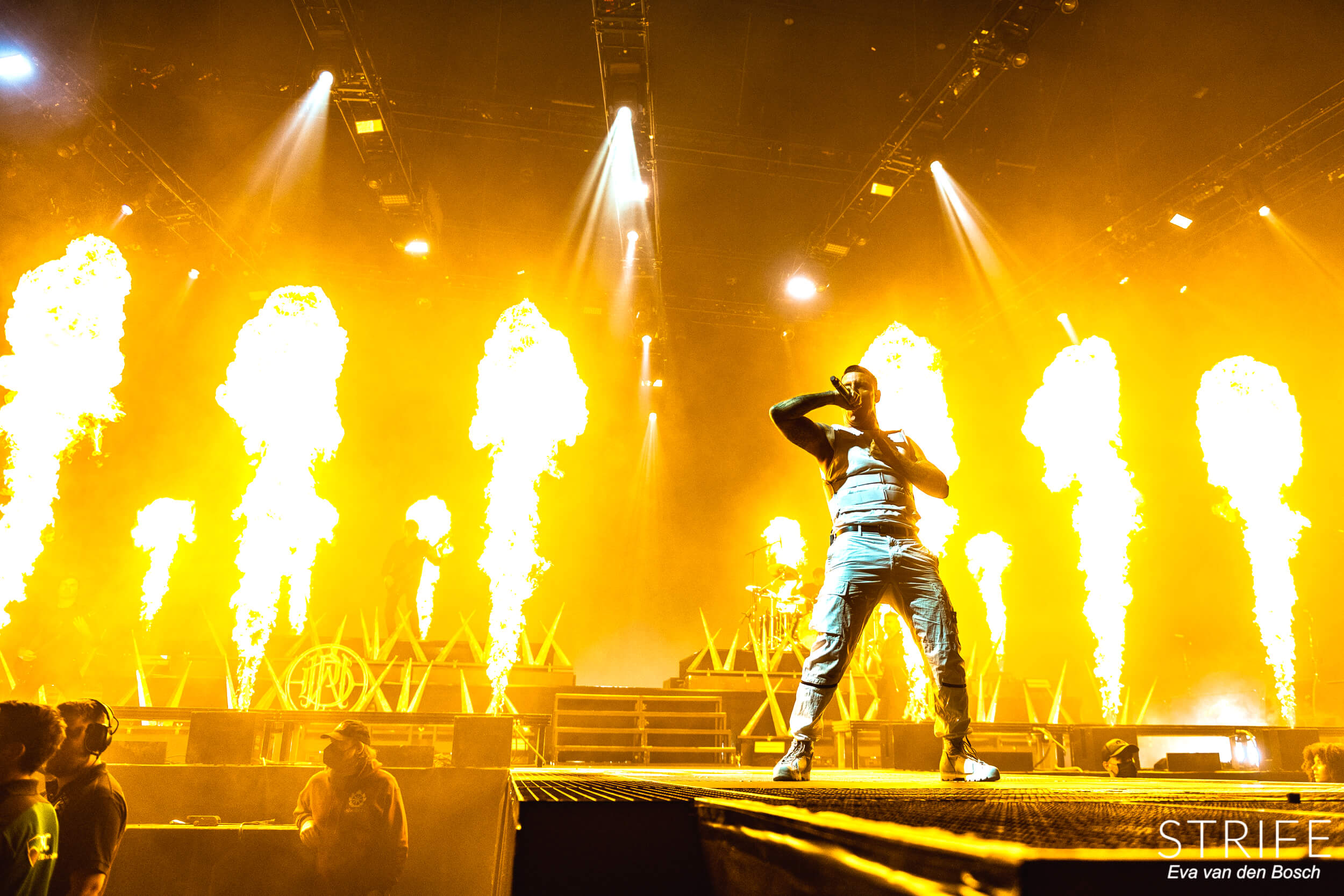 The night was already made with those 2 incredible artists performing, but of course we had the headliner still to go. The almighty Parkway Drive, who recently unleashed their brand new album Darker Still unto the world and saw mixed reviews from fans and critics alike, as has been the case since IRE. The show started in a unique fashion, with many hooded figures coming onto the stage with torches, slowly building up to the musicians taking their rightful places on stage. Kicking off their extensive set with the debut single off of Darker Still: Glitch. Bad reviews or not, the fans in the packed AFAS LIVE didn’t care, and many were already shouting back the words to the new songs.
