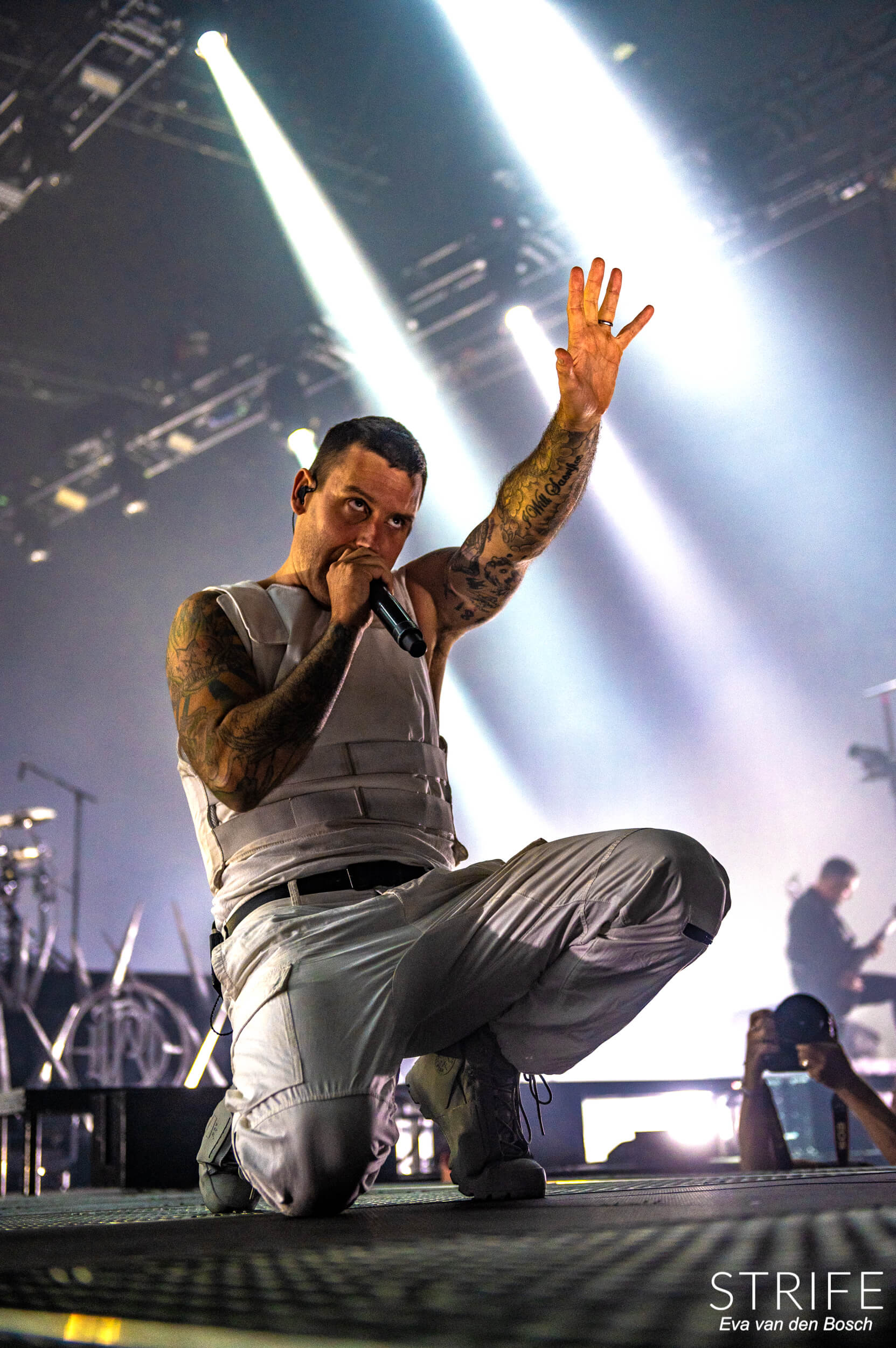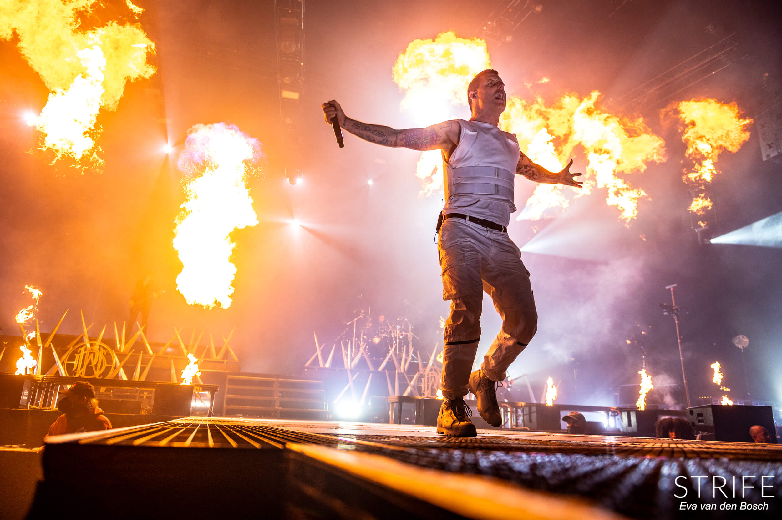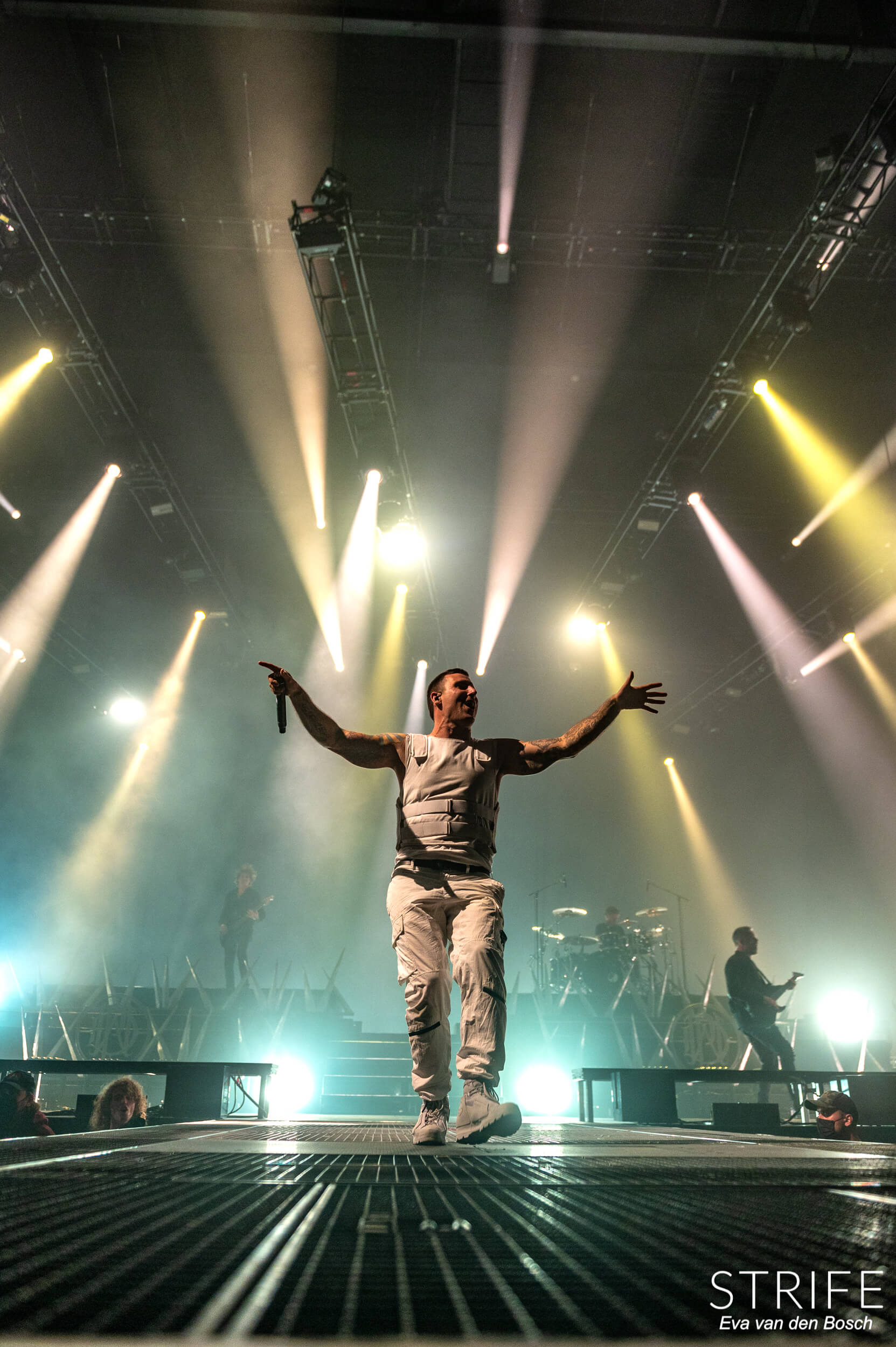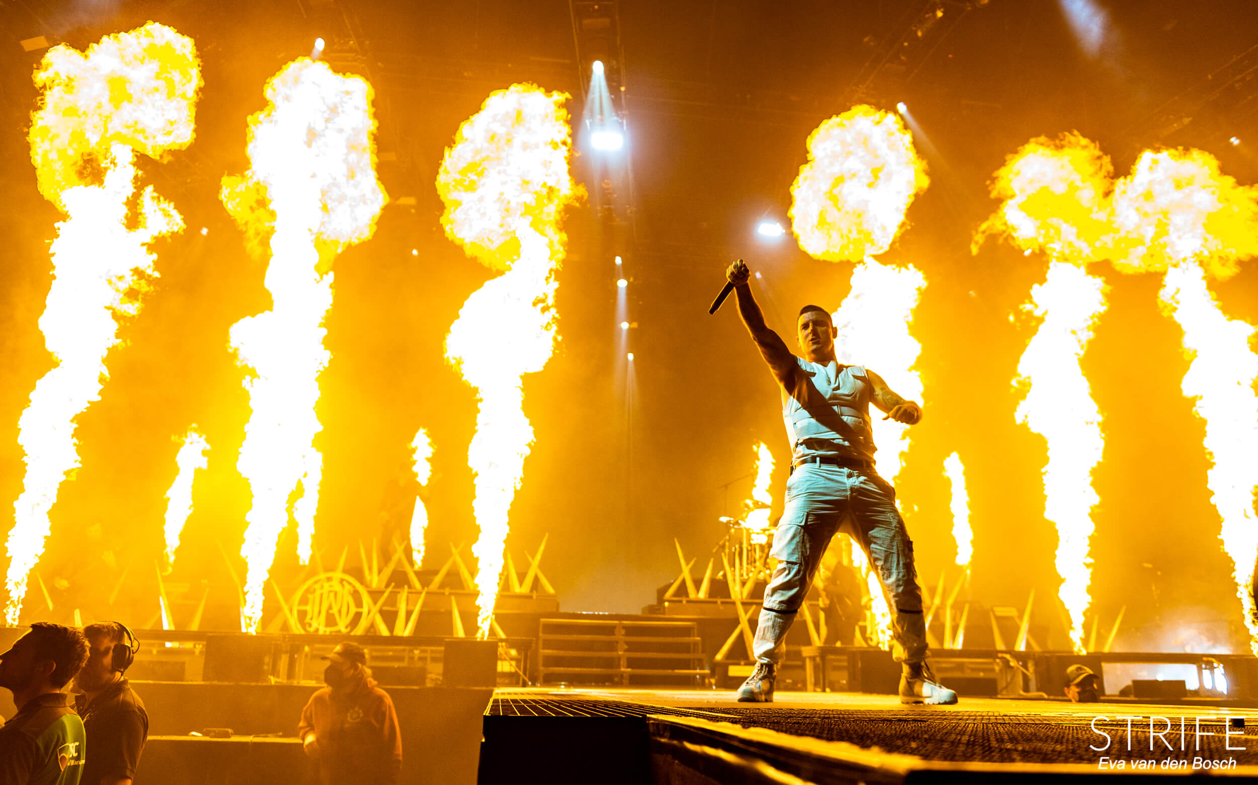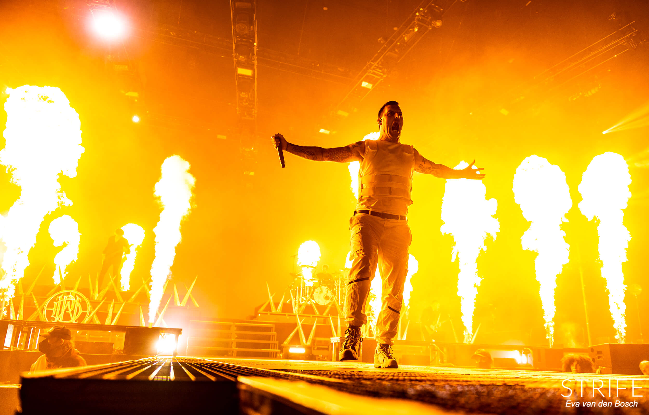 The night was already made with those 2 incredible artists performing, but of course we had the headliner still to go. The almighty Parkway Drive, who recently unleashed their brand new album Darker Still unto the world and saw mixed reviews from fans and critics alike, as has been the case since IRE. The show started in a unique fashion, with many hooded figures coming onto the stage with torches, slowly building up to the musicians taking their rightful places on stage. Kicking off their extensive set with the debut single off of Darker Still: Glitch. Bad reviews or not, the fans in the packed AFAS LIVE didn’t care, and many were already shouting back the words to the new songs.