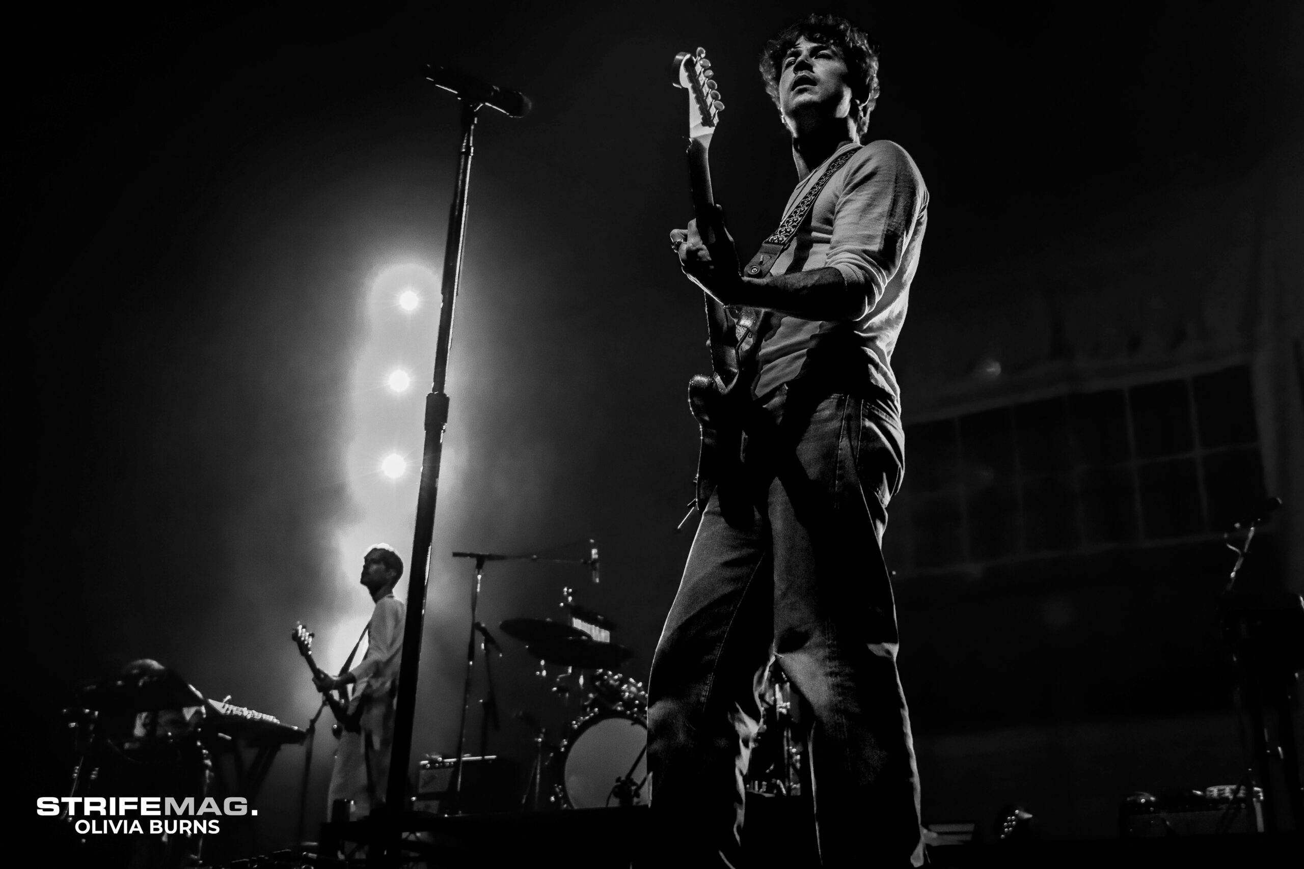 Crowd all rearing to go after that amazing performance, we were all ready for the main act! A white sheet hid away the stage as a white light shone through it, as the band members silhouettes standing on the other side of it. They started off with Do Not Wait, as it came to an end and quickly transitioned into Your Apartment, the white curtain dropped and the crowd absolutely lost it at getting their first glance at the band. Their song Scrawny was up next, everyone was standing up singing and dancing along to the hit track.