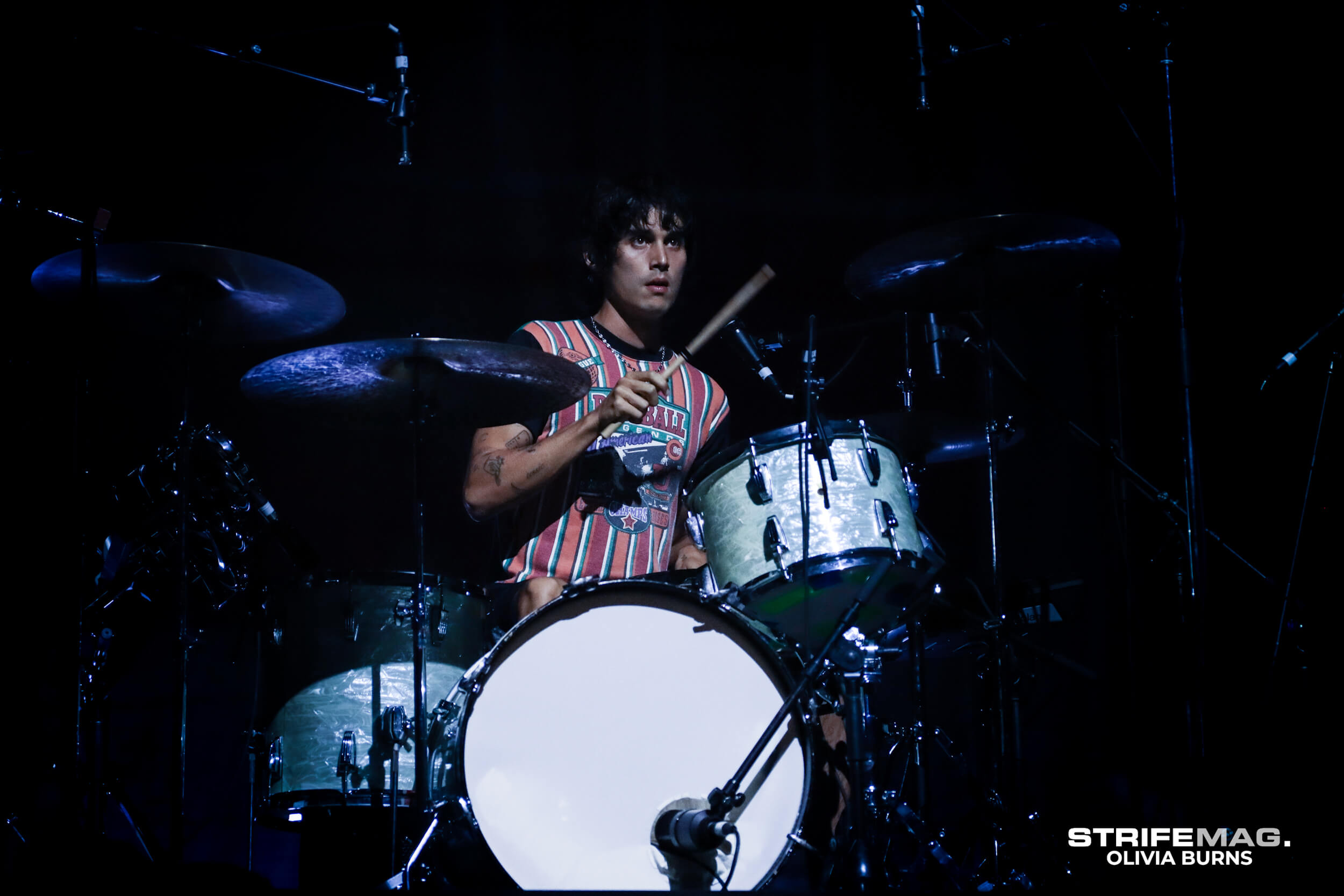 But first up it was support act GrentPerez to warm up the crowd for the evening and warm up the crowd he did. He was able to get the already nearly full arena to participate in singing along, having their phone torches in the air during moments. The singer songwriter was joined on stage by a lively drummer and guitarist who playfully interacted with each other as they played. Grent made playful banter, hyping up the crowd to scream their excitement for Wallows and join in on some sing-a-long moments, notably the crowd right up the front already knew all the words to his songs.