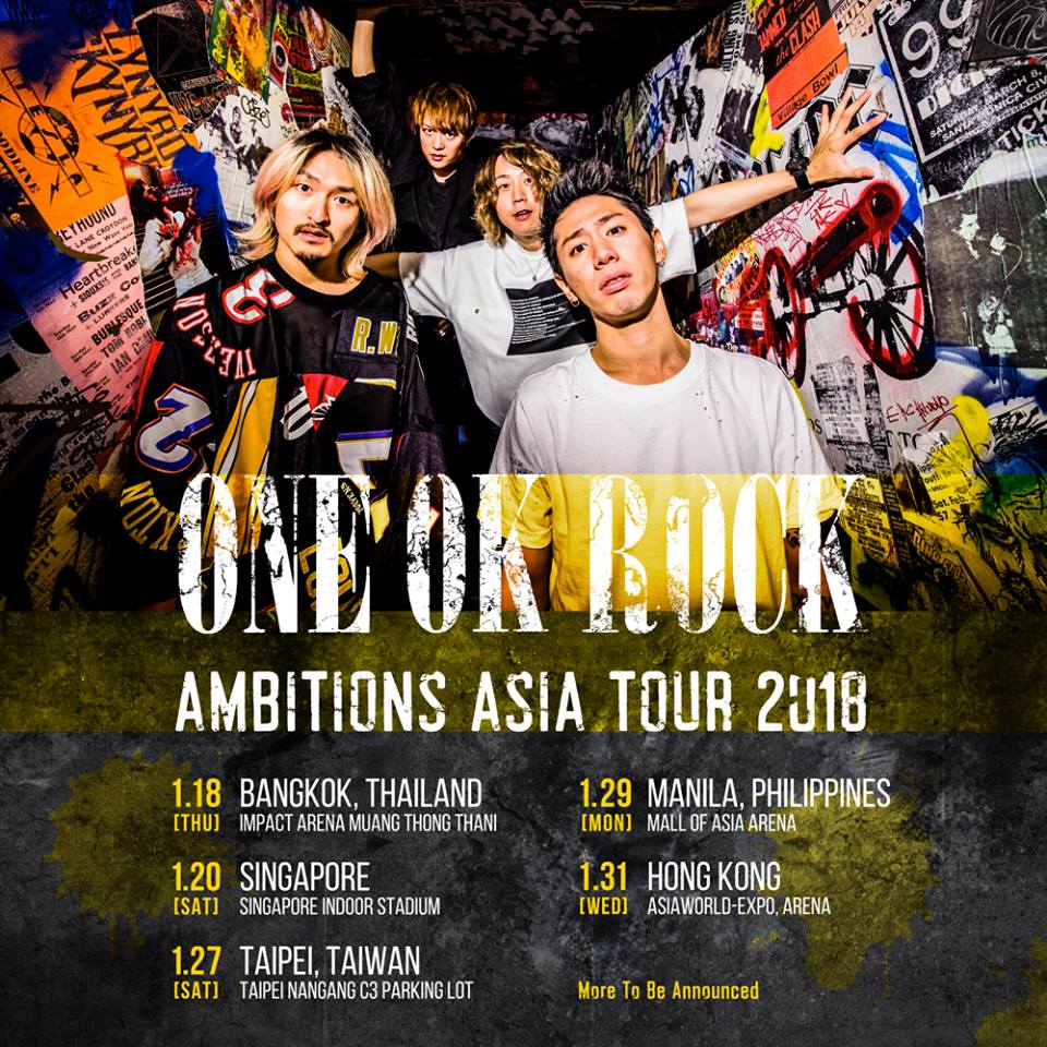 ONE OK ROCK have announced a new tour for early next year. They’ll be going on the “Ambitions” tour all over Asia in January.Only a couple dates have been announced so far, but more dates will come soon.Have a look at all the details on the tour poster below.